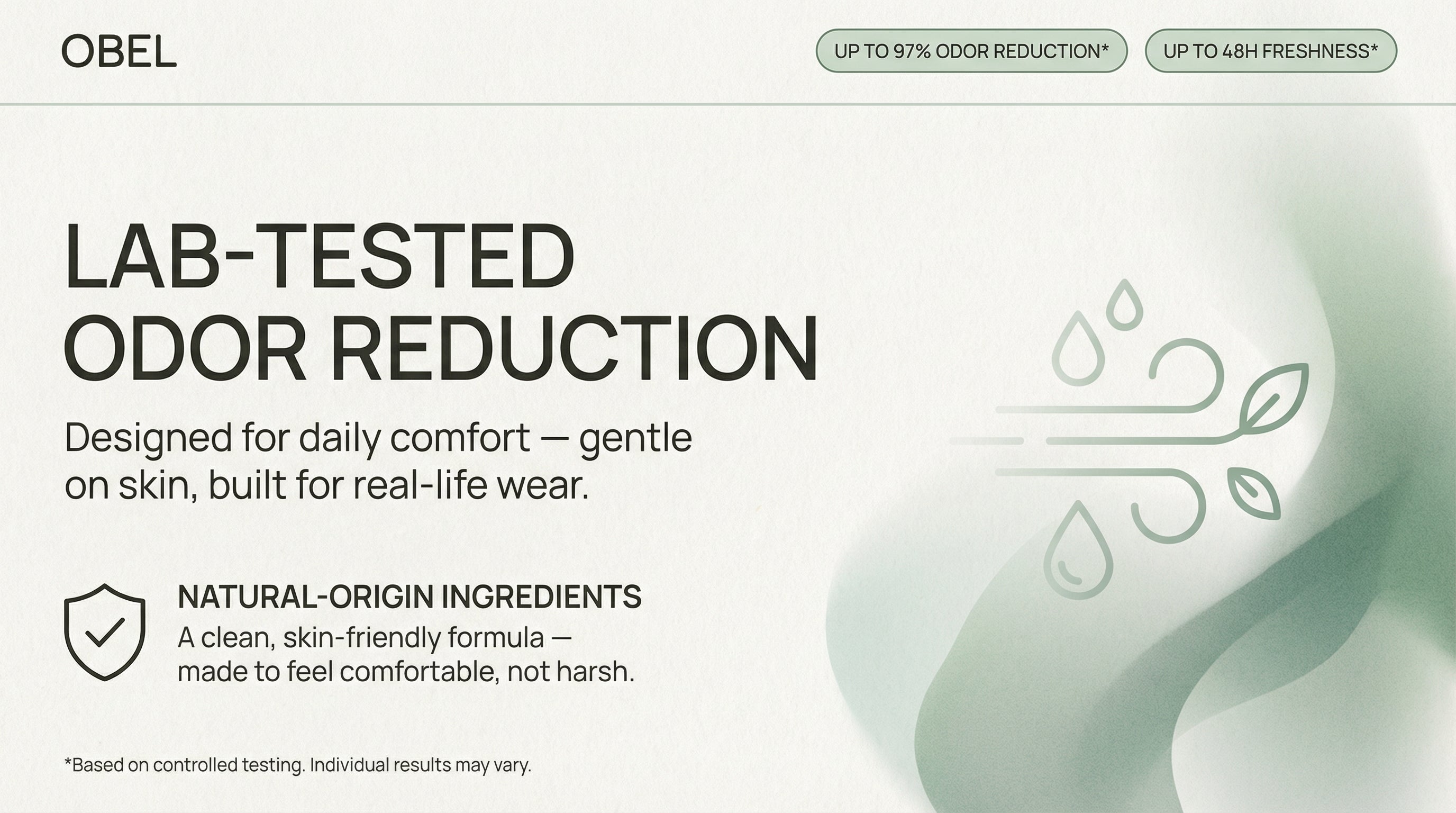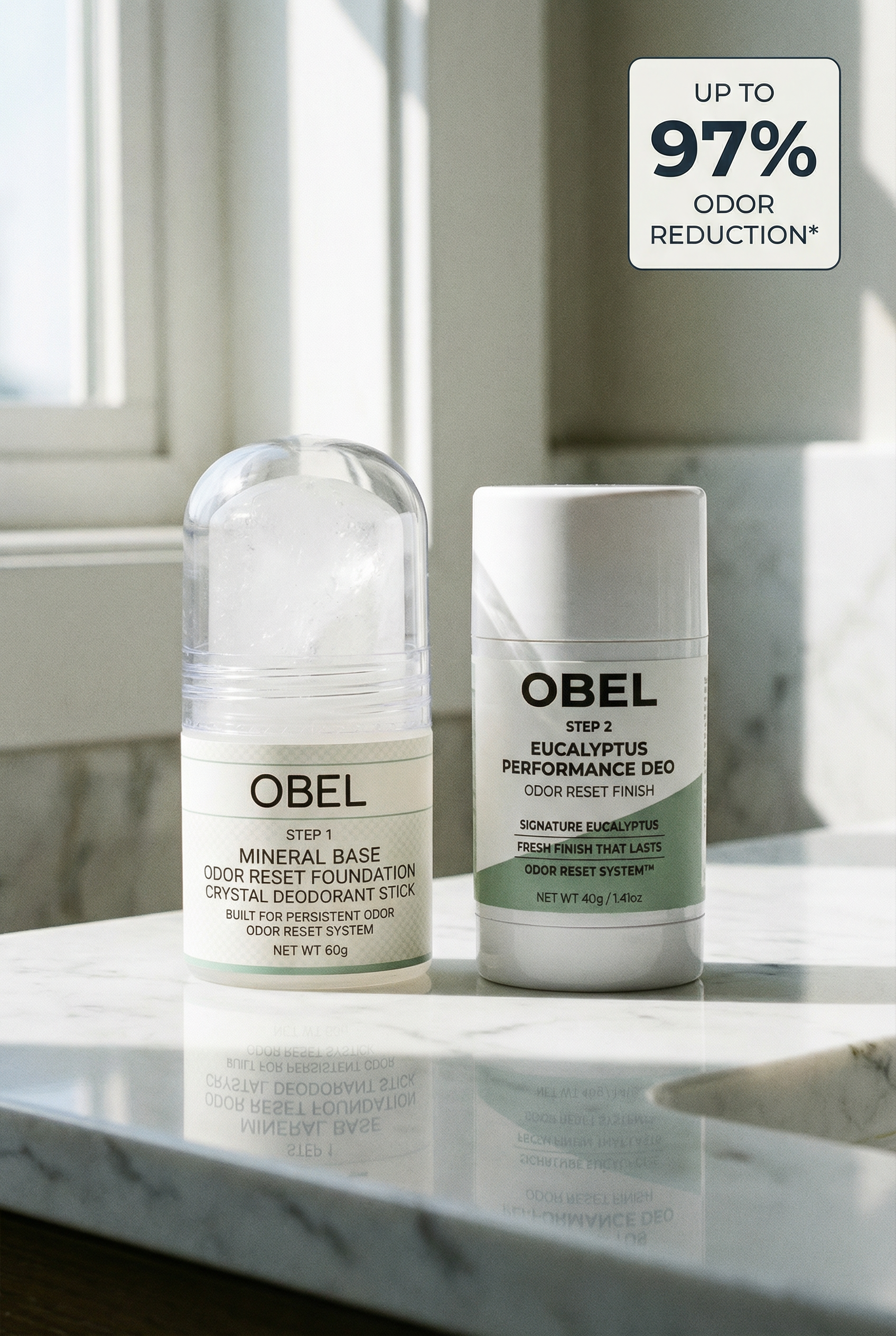 That’s exactly who this was built for. OBEL isn’t “one more deodorant” — it’s a 2-step system designed for odor that keeps coming back.